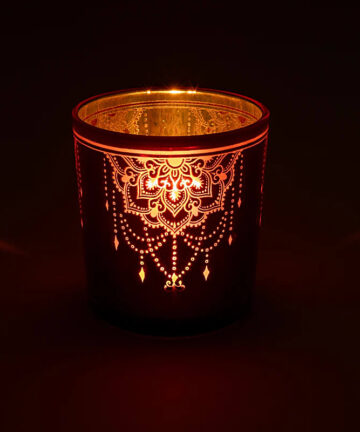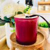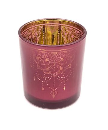 Coulée à la main dans un élégant pot en verre bordeaux orné d’un mandala doré, elle symbolise la douceur, l’équilibre et la connexion au cœur.