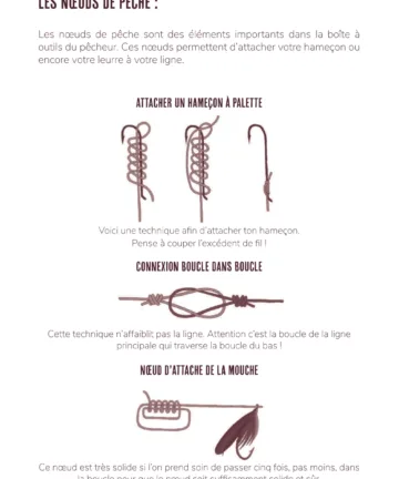 ✔️ Infos pratiques : tailles légales de pêche en France, nœuds essentiels pour sécuriser vos lignes, rappels météo et phases de lune.
