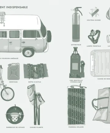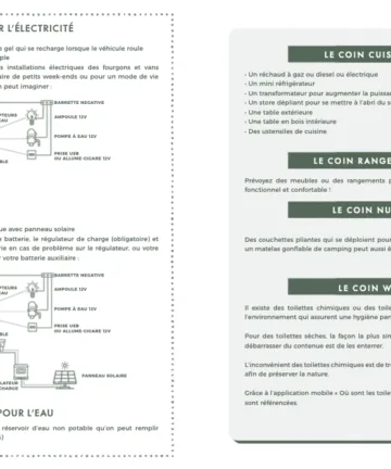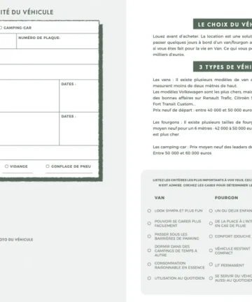 De plus, des pages guidées vous aident à organiser l’aménagement de votre véhicule et à lister l’équipement indispensable pour la route.