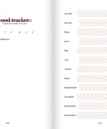 Le carnet Vivre à l’étranger ne se limite pas à l’organisation : il devient aussi votre mémoire de voyage. Vous pourrez y noter vos rencontres, vos découvertes culinaires, vos émotions et vos expériences marquantes. Un mood tracker intégré vous aide à suivre vos ressentis tout au long de cette nouvelle vie.