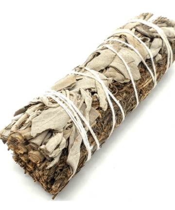 Ce bâton de Sauge Blanche et Copal mesure environ 10 cm de hauteur et 2,5 cm de diamètre. Il est prêt à être utilisé pour vos rituels de purification ou pour inviter l’amour et la paix dans votre vie et votre espace.